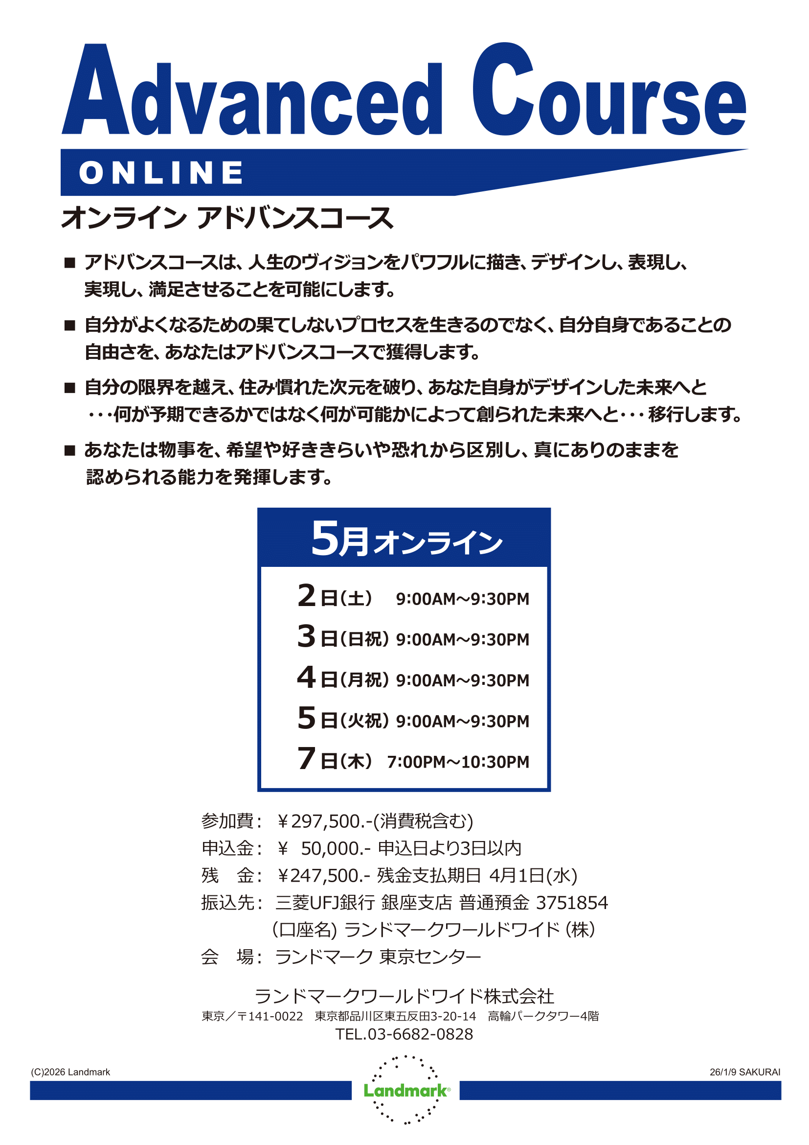 アドバンスコースは、人生のヴィジョンをパワフルに描き、デザインし、表現し、実現し、満足させることを可能にします。