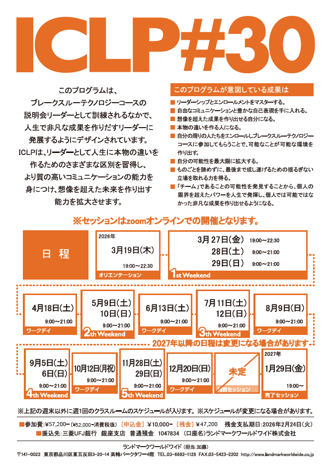 このプログラムで得れる成果は、リーダーシップ、自由さとパワーのある自己表現、効果的なコミュニケーション、どんな環境においても自分の言葉から自分の人生を創り出せるようになります。