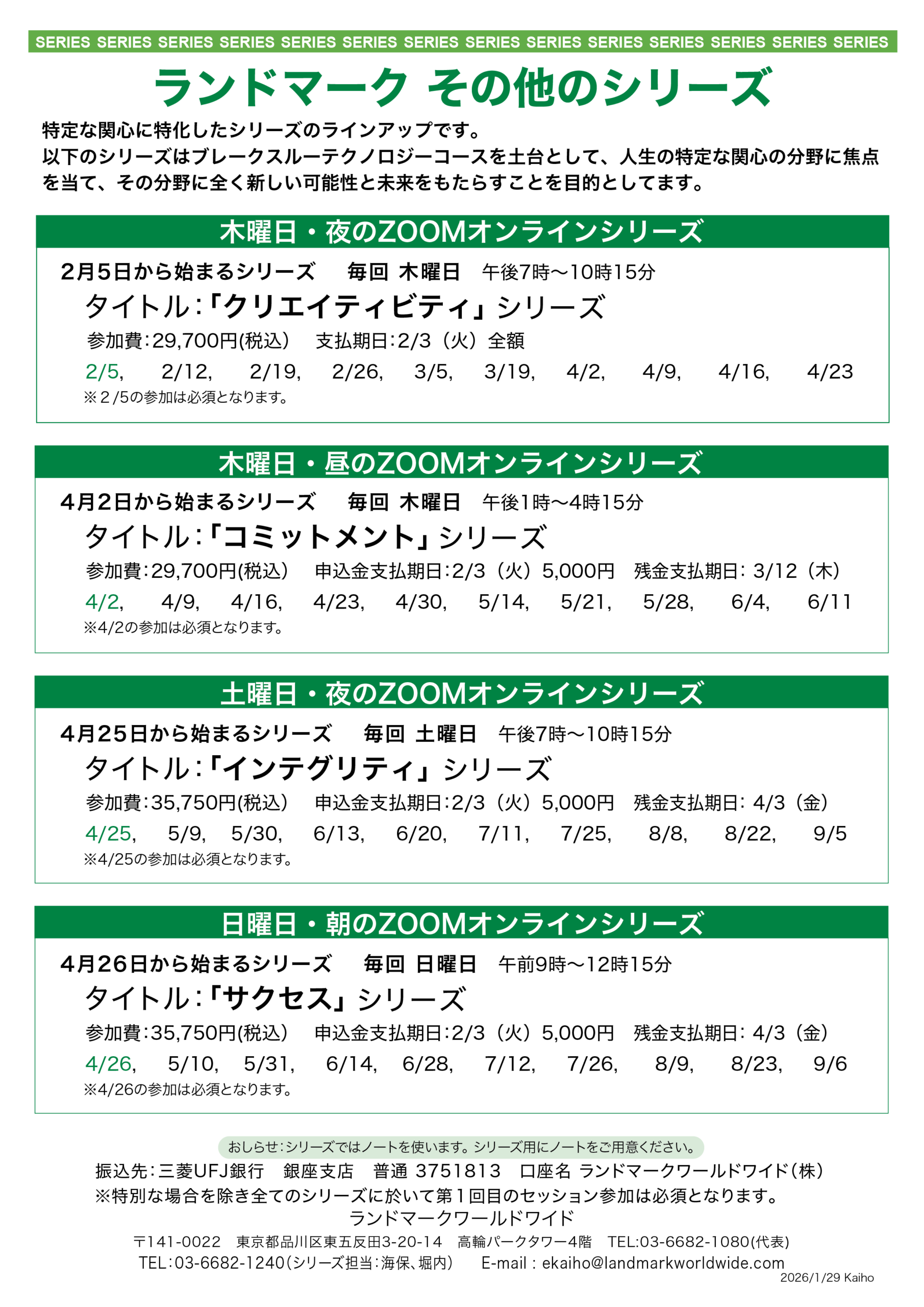 シリーズは、10回のセッションを、通常約3ヶ月間で行います。各セッションは約3時間です。